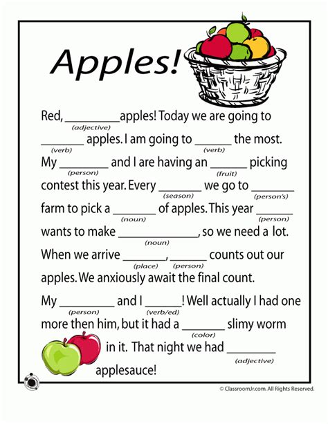 Fun and Free Kindergarten Mad Libs Hess UnAcademy