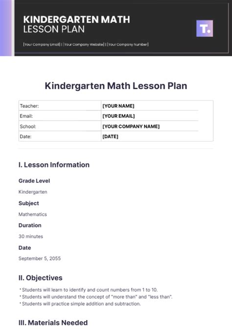 Kindergarten Lesson Plan Example
