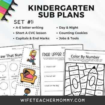 Emergency Sub Plans for Kindergarten Wife Teacher Mommy